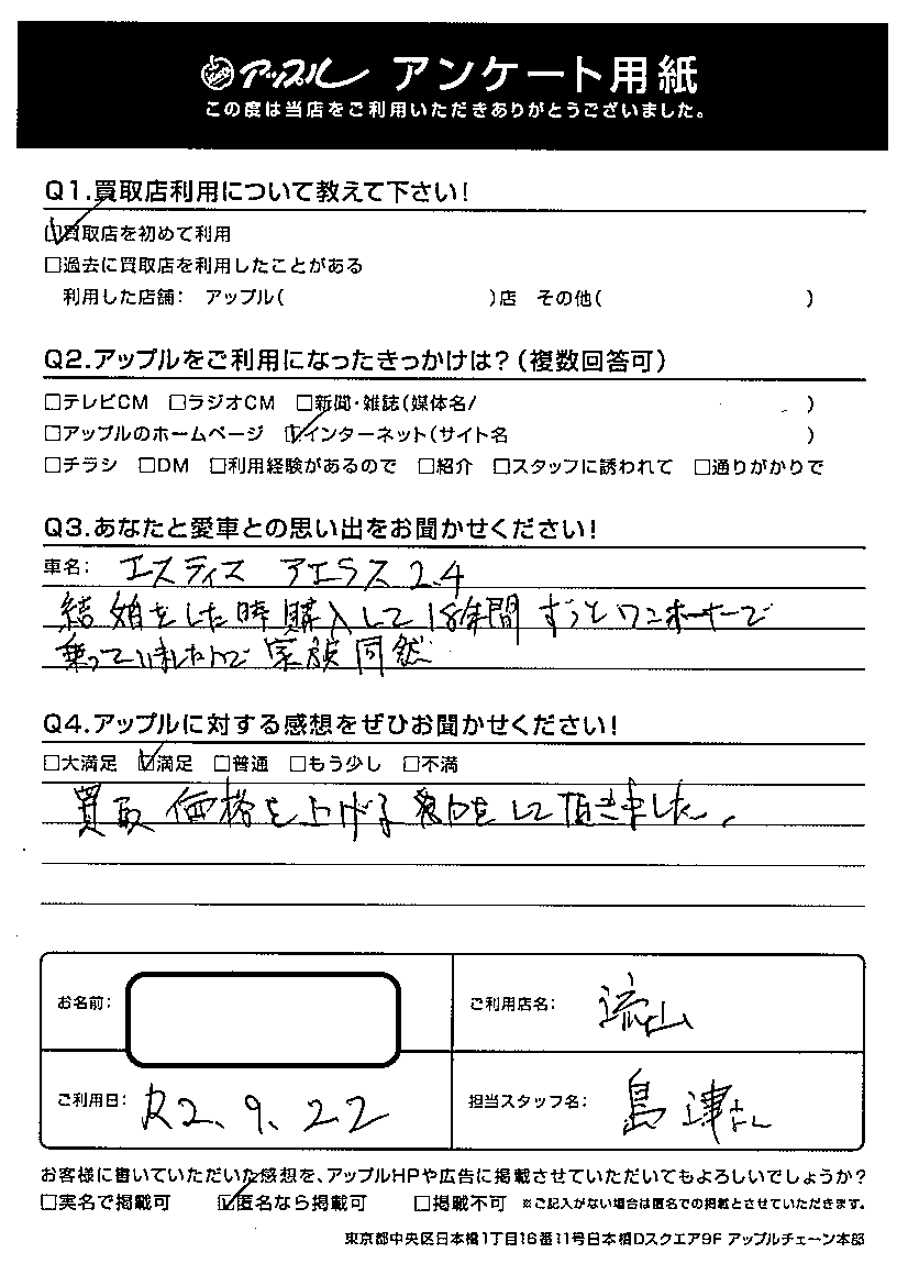 S様 車名:トヨタ エスティマ