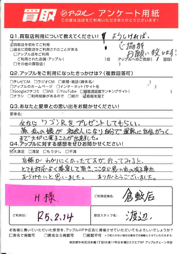 とても対応がよく接客して頂き、ここなら思い出の有る車を