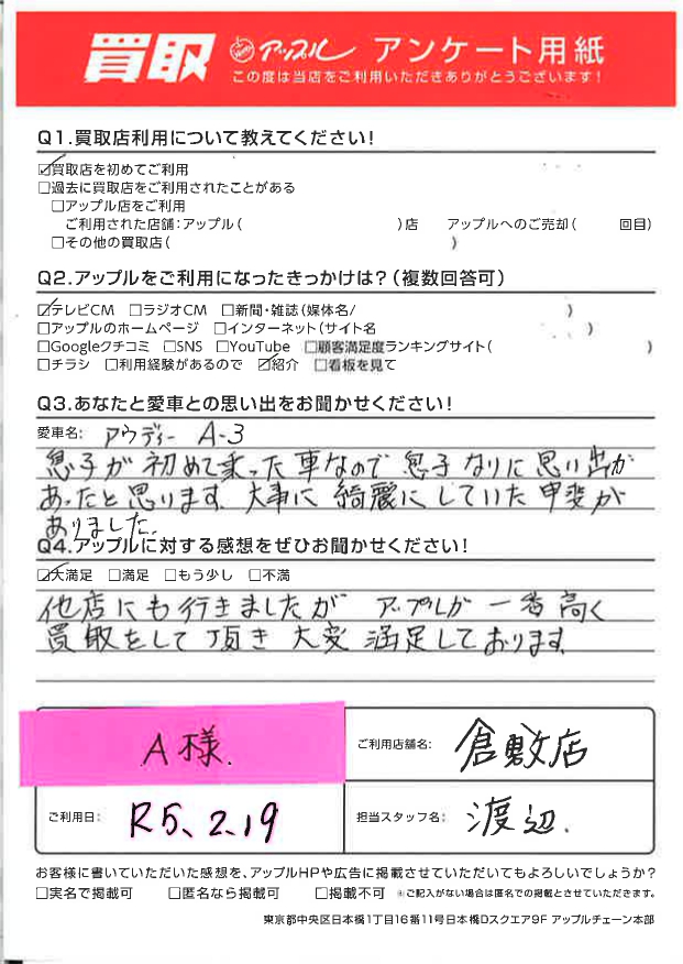 N様 車名:アウディ A3スポーツバック