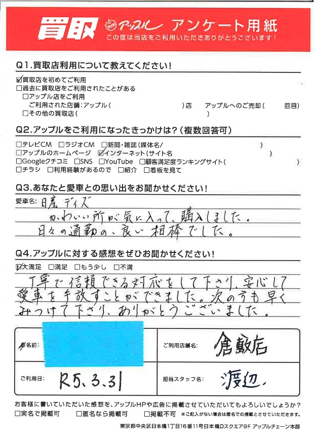 愛車を手放すことができました。次の方も早く