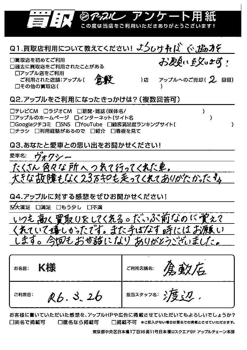 いつも高く買取りをしてくれる。だいぶ前なのに覚えて