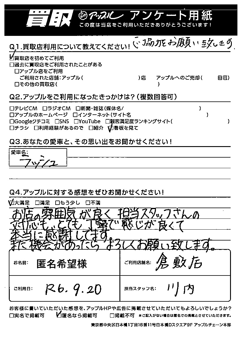 お店の雰囲気がよく担当スタッフさんの対応もとても丁寧で感じがよくて、本当に感謝してます。