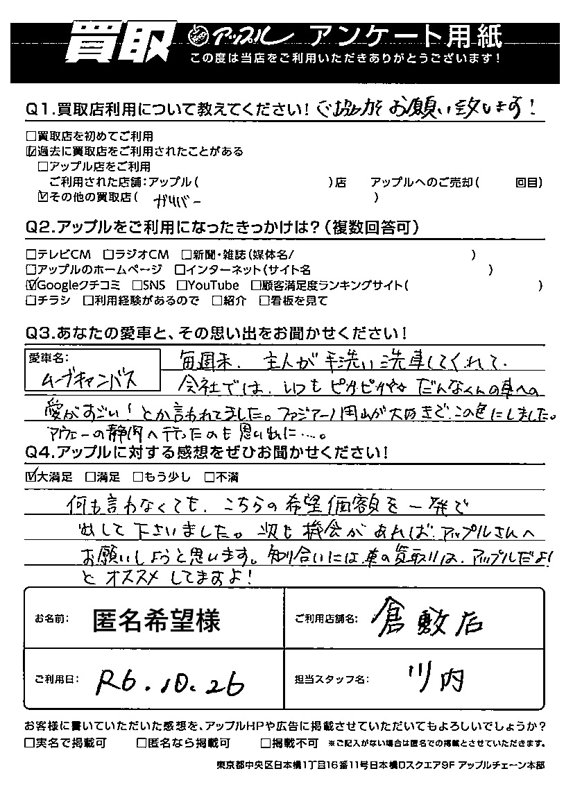 ご利用日:2024/10/26 匿名希望 様