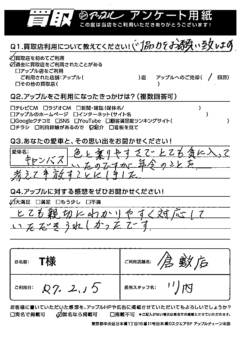 ご利用日:2025/02/15 T 様