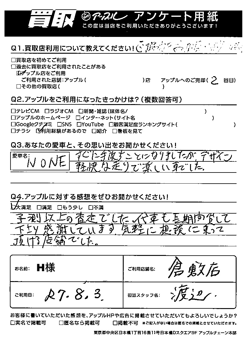 ご利用日:2025/08/03 H 様