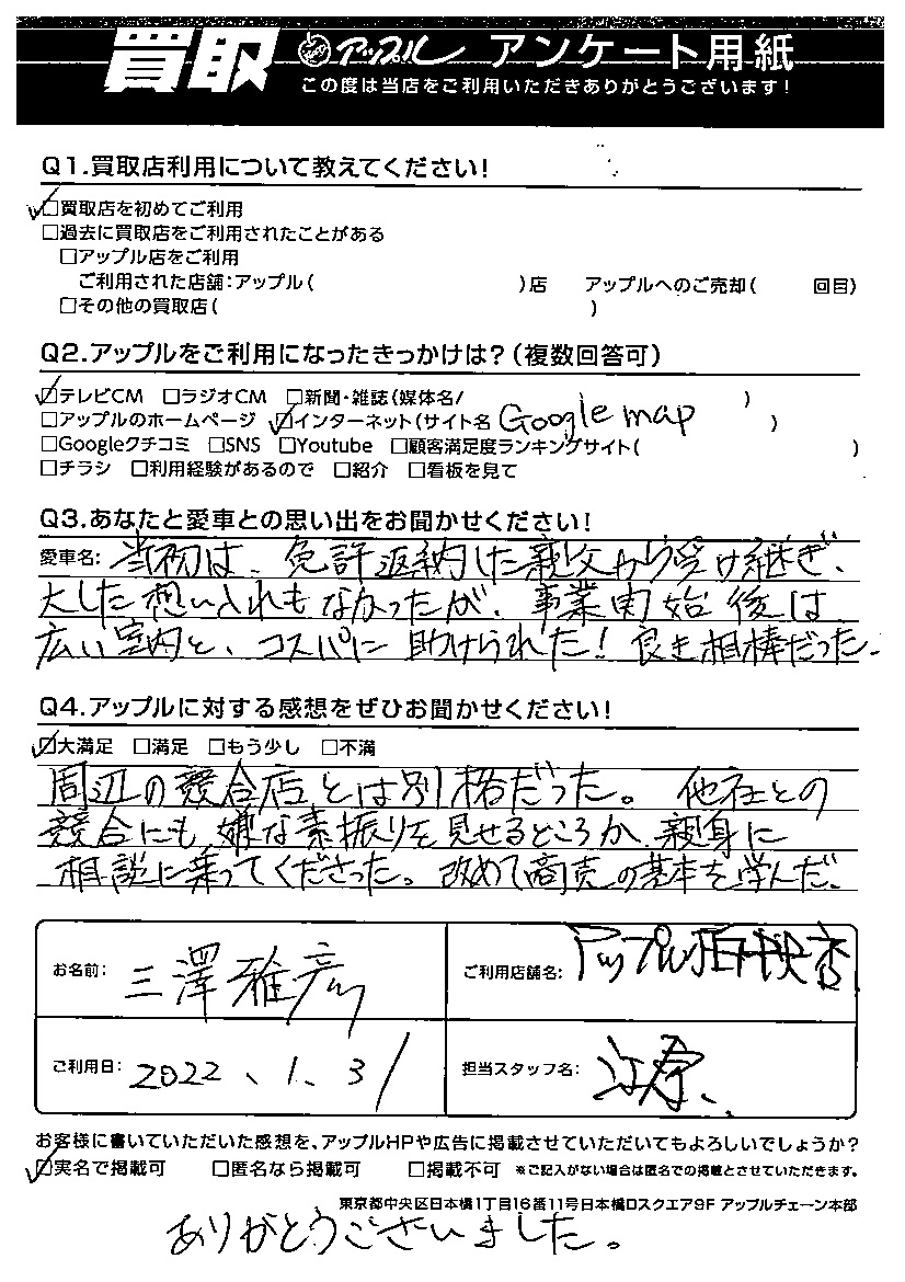 周辺の競合店とは別格だった。他社との競合にも嫌な素振りを見せるどころか親身に相談に乗ってくださった。改めて商売の基本を学んだ。