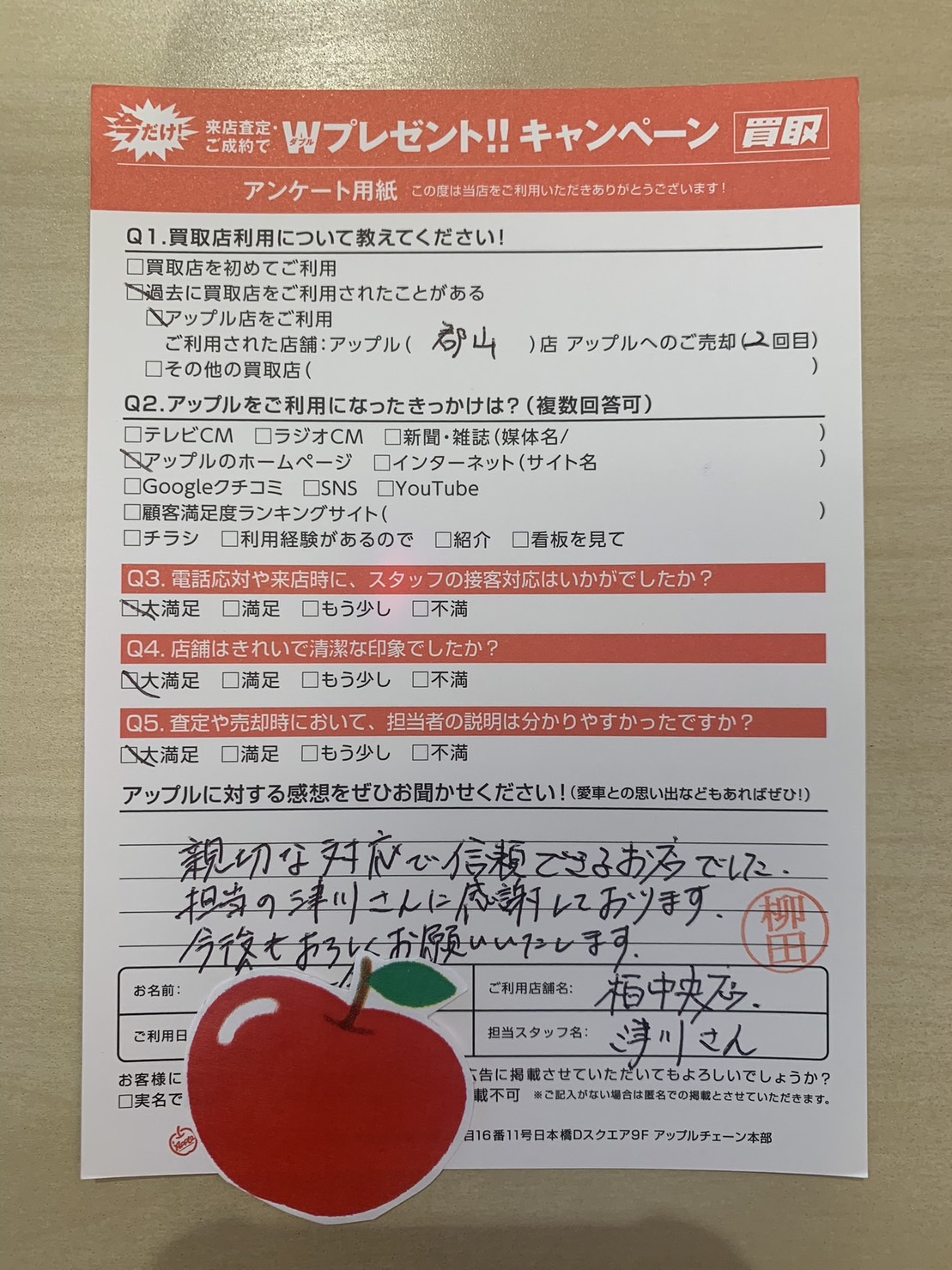 お車のご相談・ 査定だけでもOK! カンタン 入力 30秒 アップルがブランド買取始めました! お電話でも受付中! 受付時間10:00 ~ 19:00 04-7197-4436 お車のご相談・ 査定だけでもOK! カンタン 入力 30秒 アップルがブランド買取始めました! お電話でも受付中! 受付時間10:00 ~ 19:00 04-7197-4436 アップルがブランド買取始めました! お電話でも受付中! 受付時間10:00 ~ 19:00 04-7197-4436 店舗情報 在庫車 スタッフ紹介 ブログ お客様の声 キャンペーン 無料査定 click お客様の声 ご記入日: 2023/09/18 千葉県我孫子市 T様 車名:マツダ CX-3 親切な対応で信頼できるお店でした。担当の津川さんに感謝しております。今後もよろしくおねがいいたします。 前へ 次へ お客様の声一覧を見る