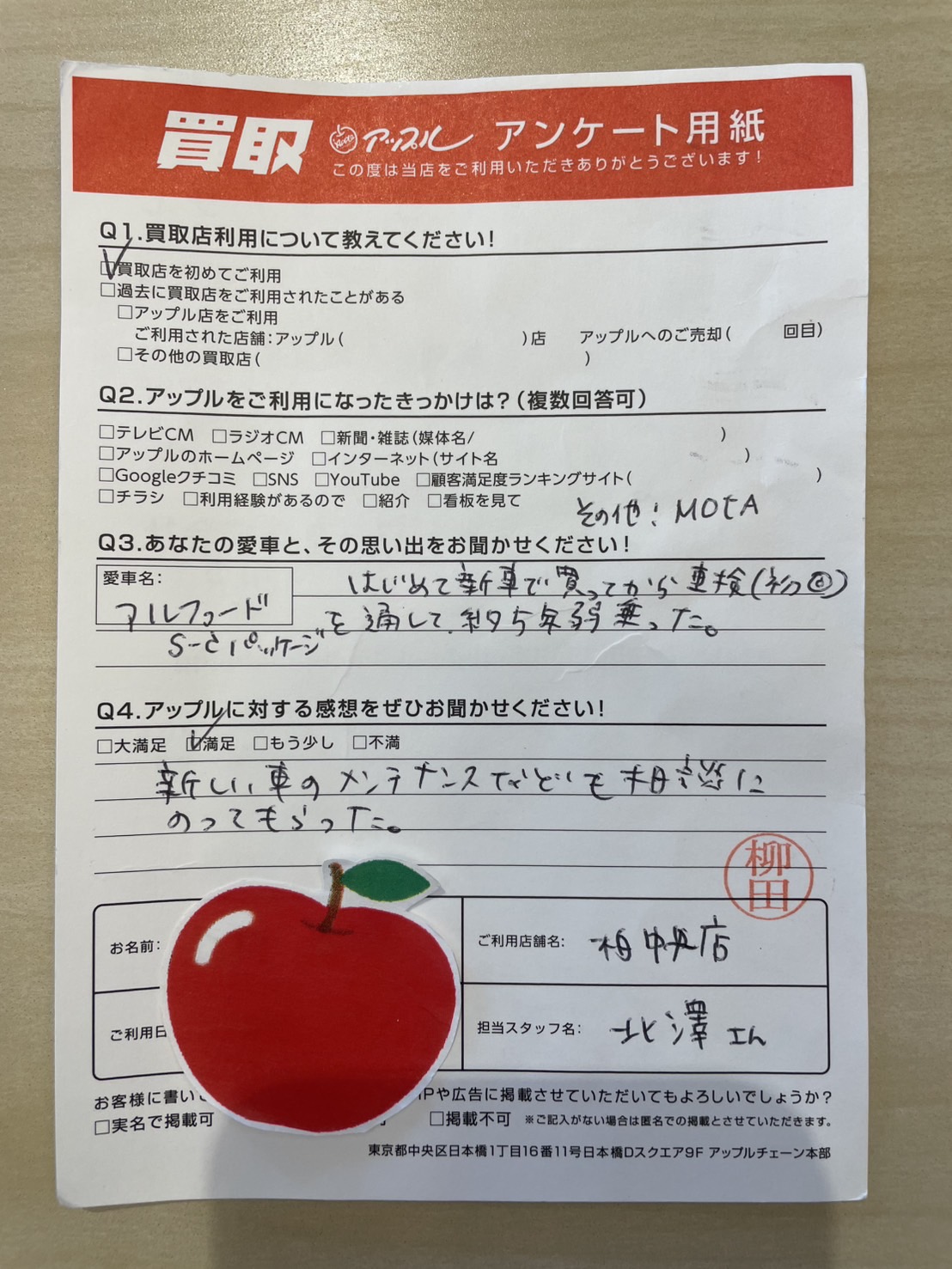 Q.アップルに対する感想をぜひお聞かせください!