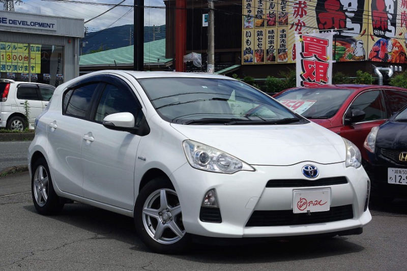 店頭に白いアクアが2台あります。