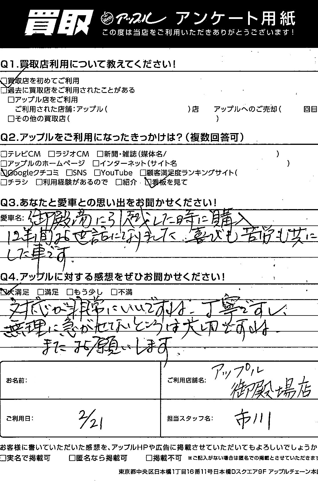 御殿場に引っ越した時に購入。12年間お世話になりました。喜びも苦労も共にした車です。
