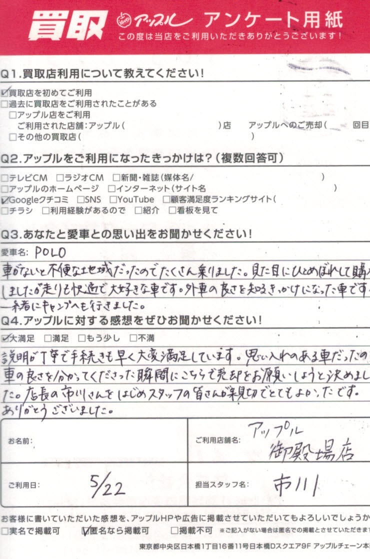 ポロ買取H・K様 車名:フォルクスワーゲン ポロ