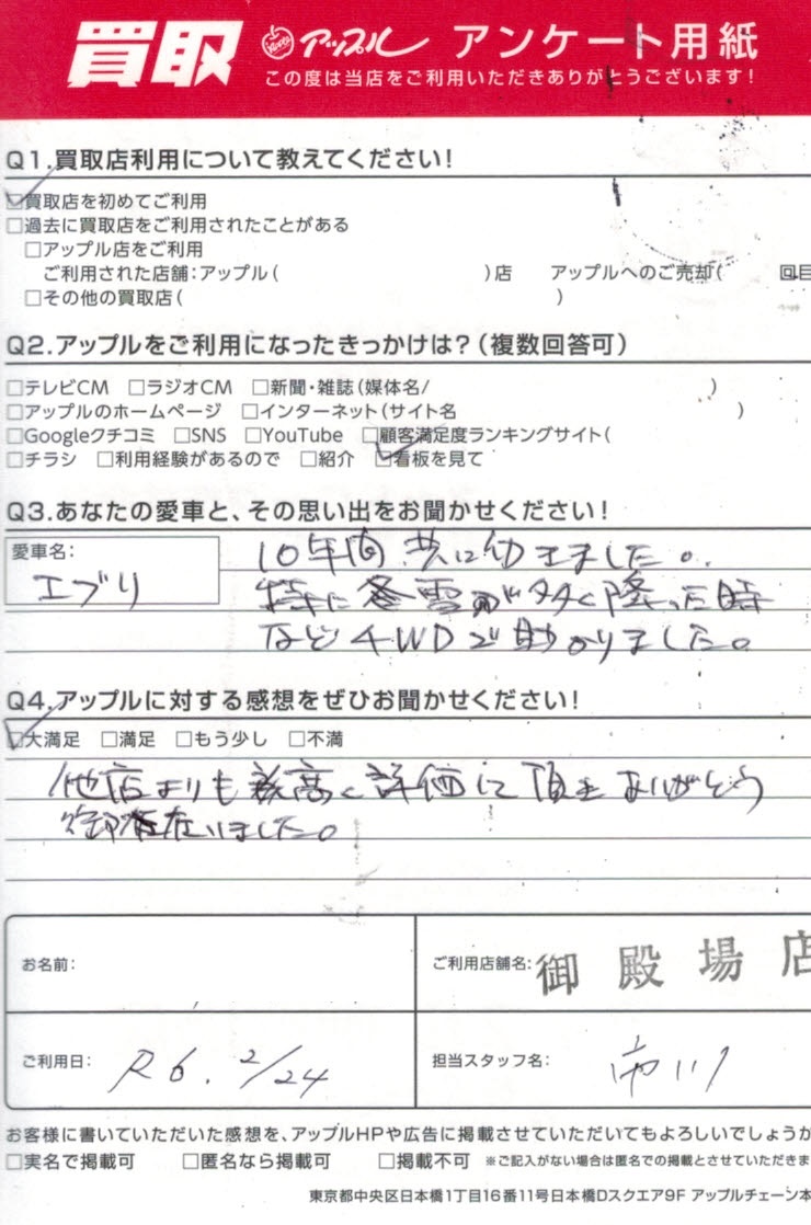 エブリイ買取S・J様 車名:スズキ エブリイ