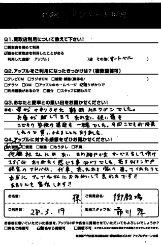 他社さんには無いきめ細やかなサービスをして頂け、こちらがありがたく感じる事ばかりでした。売るタイミングや税金のアドバイス、代車、売った後家に送ってくれたりと本当にアップルさんにお願いして良かったです!!