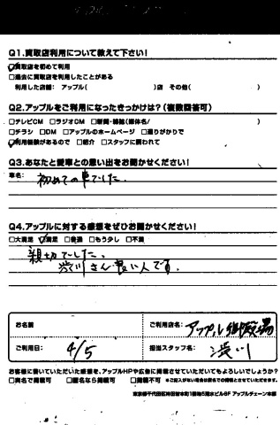 お車のご相談・ 査定だけでもOK! カンタン 入力 30秒 アップルがブランド買取始めました! お電話でも受付中! 受付時間10:00 ~ 18:00 0120-81-3776 お車のご相談・ 査定だけでもOK! カンタン 入力 30秒 アップルがブランド買取始めました! お電話でも受付中! 受付時間10:00 ~ 18:00 0120-81-3776 アップルがブランド買取始めました! お電話でも受付中! 受付時間10:00 ~ 18:00 0120-81-3776 店舗情報 在庫車 スタッフ紹介 ブログ お客様の声 キャンペーン 無料査定 click お客様の声 ご記入日: 2016/04/05 オッティ 買取 I.K様 ☆あなたと愛車との思い出をお聞かせください 初めての車でした。 ☆頂きましたアップルに対するご感想・・・満足 親切でした。 渋川さん良い人です。 前へ 次へ お客様の声一覧を見る