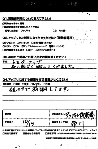 ご記入日: 2016/10/15