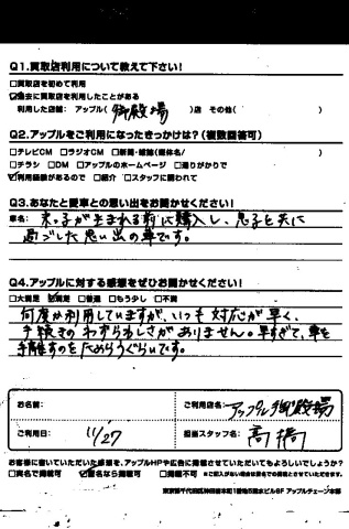 何度か利用していますが、いつも対応が早く、手続きのわずらわしさがありません。早すぎて車を手放すのをためらうくらいです。