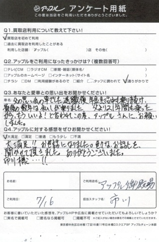 ・アップルに頂きました感想・・大満足