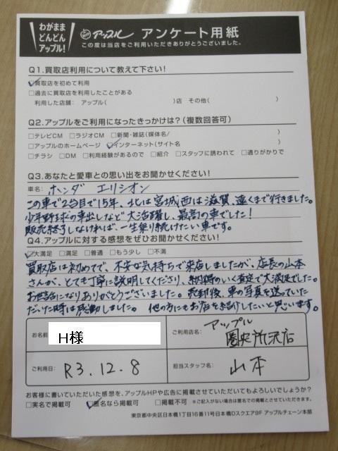 H.R様 車名:ホンダ エリシオン