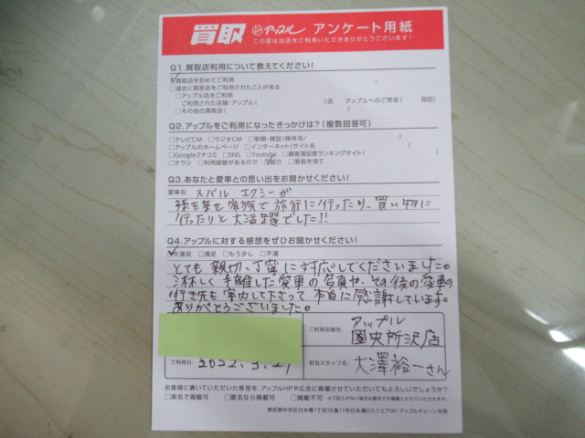O・T様 車名:スバル エクシーガ