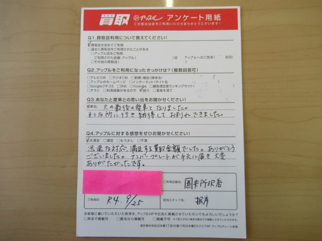 ナンバープレートが手元に届き大変ありがたかったです。