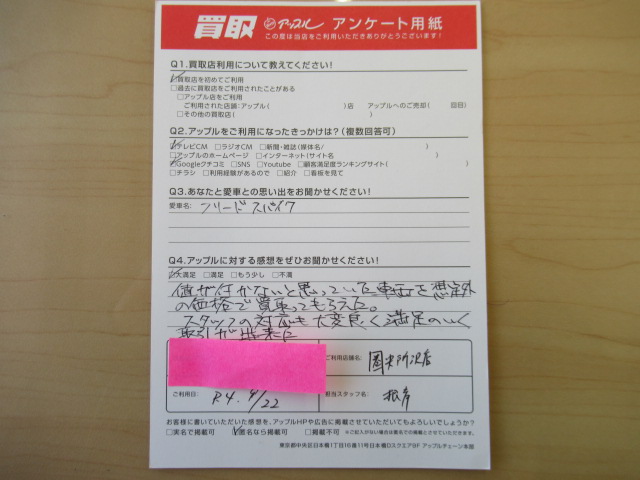 お車のご相談・ 査定だけでもOK! カンタン 入力 30秒 アップルがブランド買取始めました! お電話でも受付中! 受付時間10:00 ~ 19:00(火曜日は18:30までになります) 04-2933-3008 お車のご相談・ 査定だけでもOK! カンタン 入力 30秒 アップルがブランド買取始めました! お電話でも受付中! 受付時間10:00 ~ 19:00(火曜日は18:30までになります) 04-2933-3008 アップルがブランド買取始めました! お電話でも受付中! 受付時間10:00 ~ 19:00(火曜日は18:30までになります) 04-2933-3008 店舗情報 在庫車 スタッフ紹介 ブログ お客様の声 キャンペーン 無料査定 click お客様の声 ご記入日: 2022/09/22 T.H様 車名:ホンダ フリードスパイク アップルの感想:大満足値が付かないと思っていた車両を想定外の価格で買い取ってもらえた。スタッフの対応も大変良く満足のいく取引が出来た。 前へ 次へ お客様の声一覧を見る