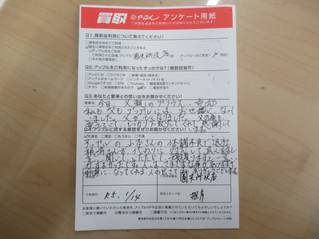 父が亡くなりました。父の事も覚えていてしっかり買取してくれて感謝しています。