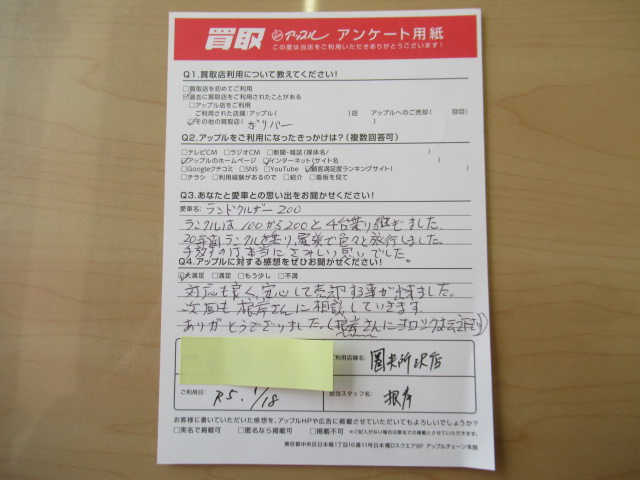 S・T様 車名:トヨタ ランドクルーザー200(H19年9月~)