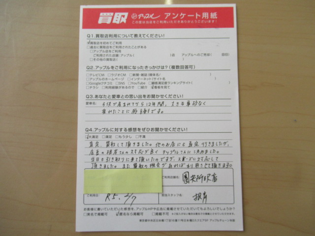 査定、買取して頂きました。他のお店にも査定行きましたが、店長の根岸さんの対応が良くアップルさんに決めました。