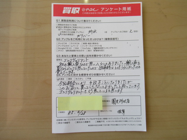 輸入車を買うならゴルフと思っていたので納車時はとてもうれしかったのを覚えています。