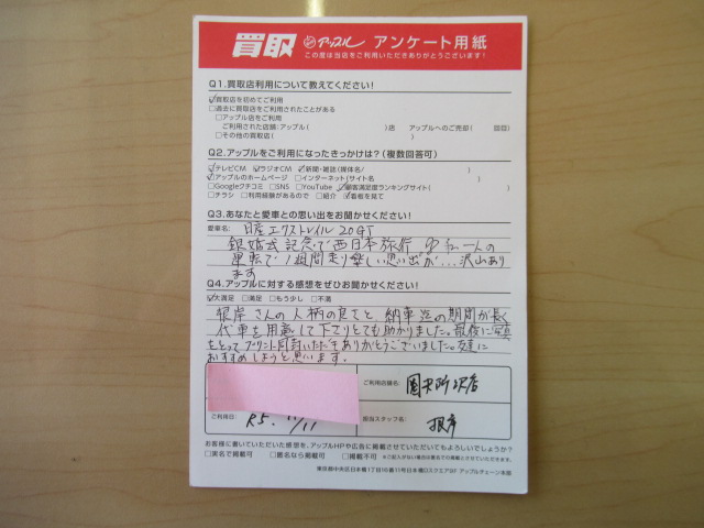 根岸さんの人柄の良さと納車迄の期間が長く代車を用意して下さり