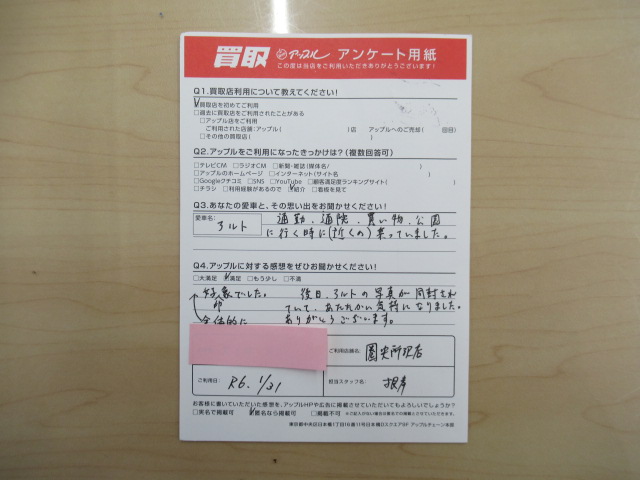 全体的に好印象でした。後日アルトの写真が同封されていてあたたかい気持ちになりました。ありがとうございます。