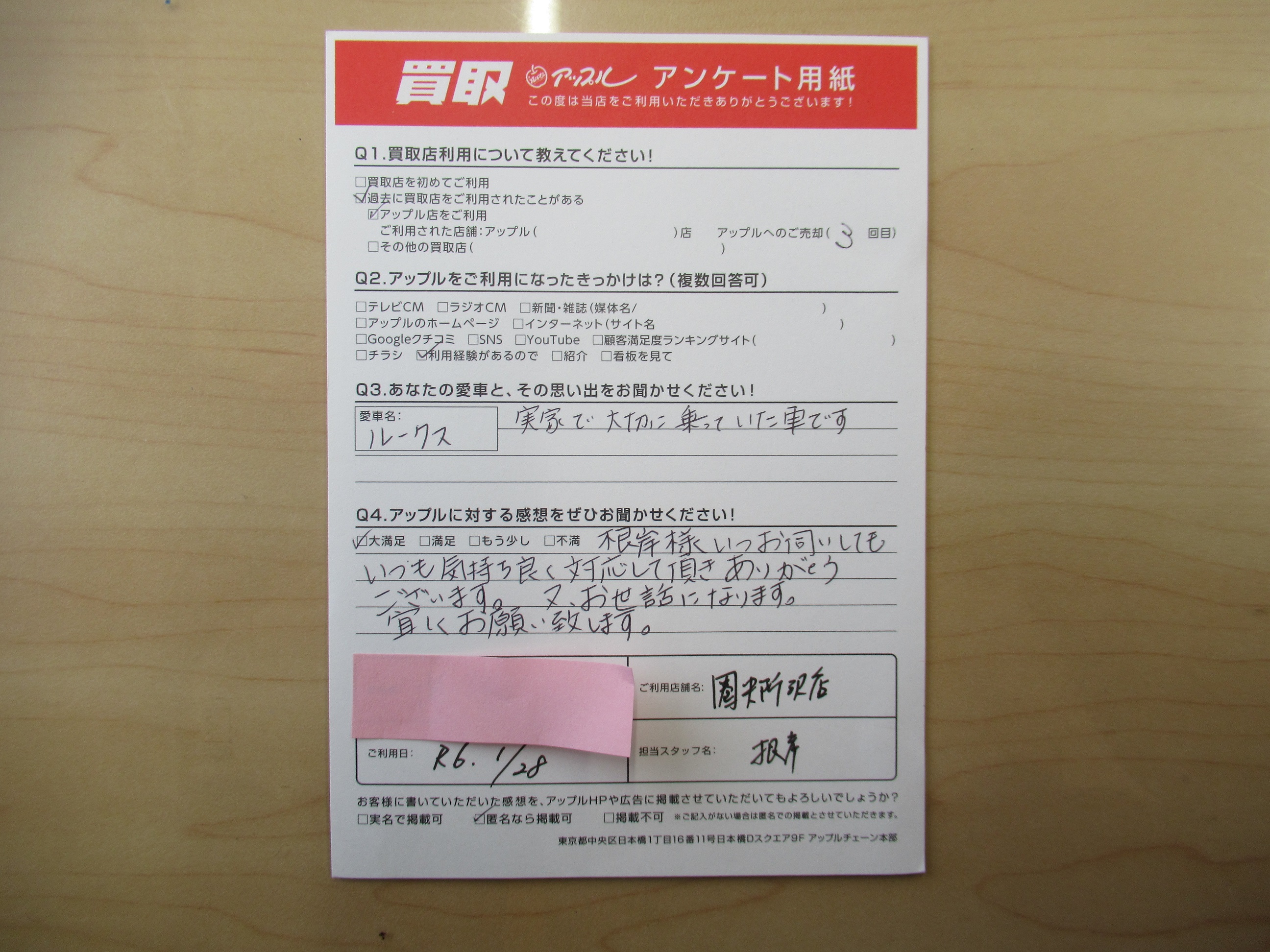 お車のご相談・ 査定だけでもOK! カンタン 入力 30秒 アップルがブランド買取始めました! お電話でも受付中! 受付時間10:00 ~ 19:00(火曜日は18:30までになります) 04-2933-3008 お車のご相談・ 査定だけでもOK! カンタン 入力 30秒 アップルがブランド買取始めました! お電話でも受付中! 受付時間10:00 ~ 19:00(火曜日は18:30までになります) 04-2933-3008 アップルがブランド買取始めました! お電話でも受付中! 受付時間10:00 ~ 19:00(火曜日は18:30までになります) 04-2933-3008 店舗情報 在庫車 スタッフ紹介 ブログ お客様の声 キャンペーン 無料査定 click お客様の声 ご記入日: 2024/01/28 M・T様 車名:日産 ルークス 実家で大切に乗っていた車です。アップルの感想:大満足根岸様いつお伺いしてもいつも気持ち良く対応して頂きありがとうございます。又、お世話になります。宜しくお願い致します。 前へ 次へ お客様の声一覧を見る