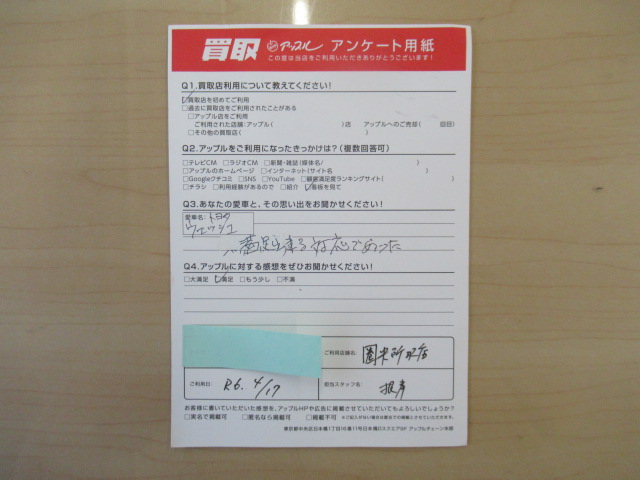 R・K様  車名:トヨタ ウィッシュ
