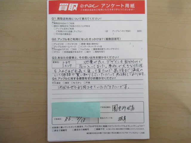 S様  車名:トヨタ シエンタ