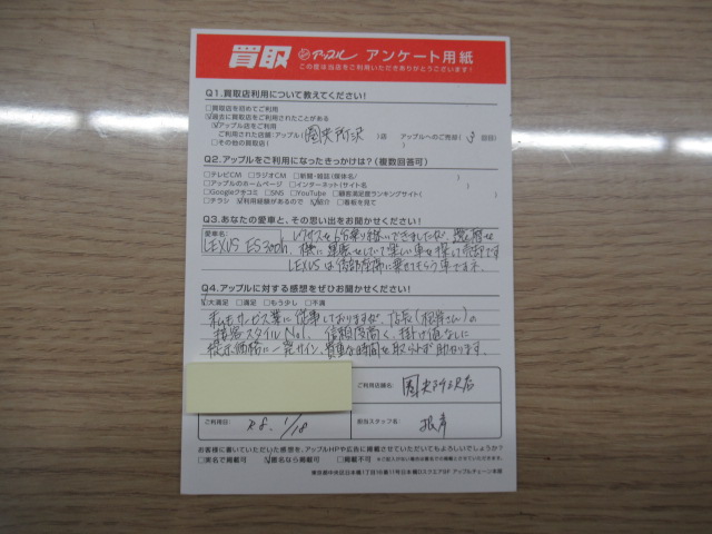 匿名希望様 車名:レクサス ES