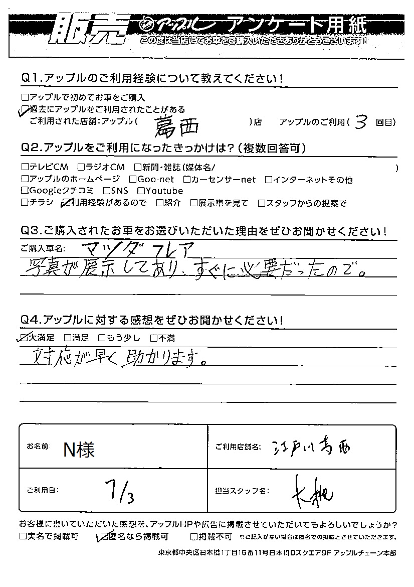 ご購入されたお車:マツダ フレア 担当:大槻