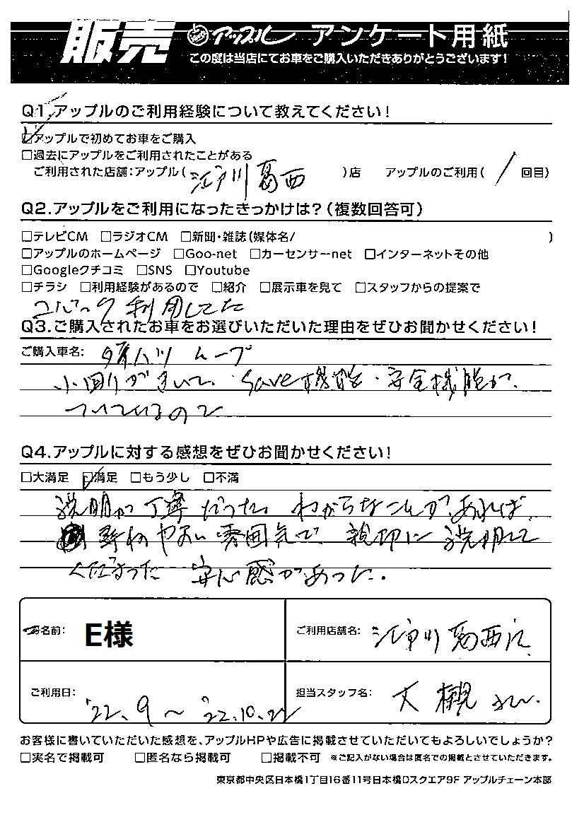 ご購入されたお車:ダイハツ ムーヴ 担当:大槻さん