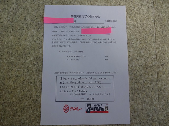 札幌手稲店をご利用されたお客様からいただいた