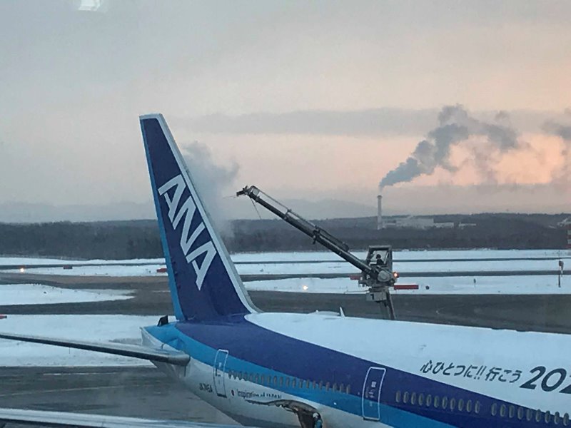 千歳発の始発の飛行機!アサヒが眩し!!!