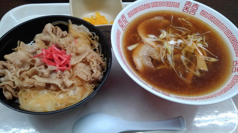 悩みましたがお腹が減っていたので豚カルビ丼とラーメンのセットにしました(≧∇≦)