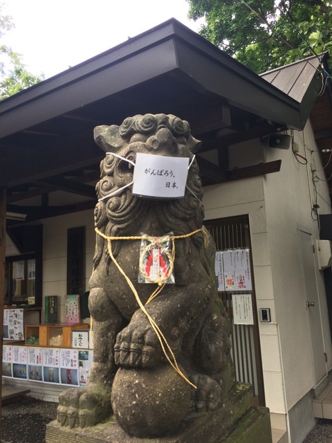 狛犬君も予防です。お疲れ様です。