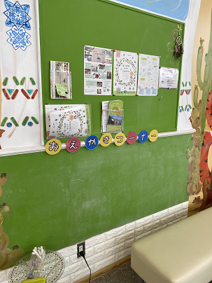 まず左側、ぬりえコーナー設置しました(^▽^)/