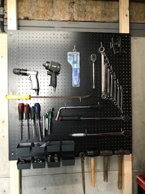 当店の整備士、西川隊長の助言もあり「壁掛け収納」にチャレンジすることに。