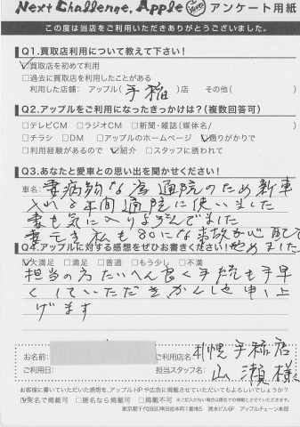 担当の方たいへん良く手続も手早くしていただきかんしゃもうしあげます。