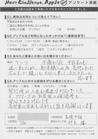 契約後の入金も迅速な対応でした。又、アフターでの名変後の確認も安心できる対応です。