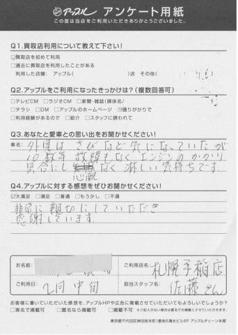 外見はさびなど気になっていたが10数年故障もなくエンジンのかかり具合にも心配なく淋しい気持ちです。