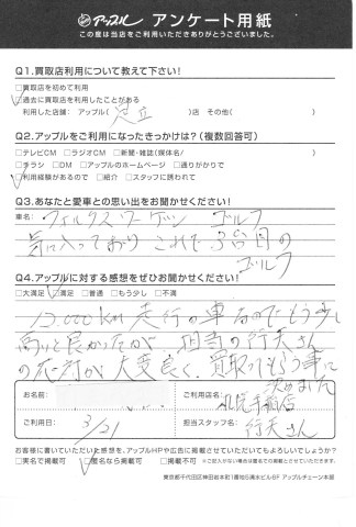 12,000km走行の車なのでもう少し高いと良かったが