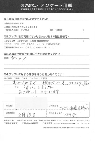 お車のご相談・ 査定だけでもOK! カンタン 入力 30秒 アップルがブランド買取始めました! お電話でも受付中! 受付時間10:00 ~ 18:00 0120-88-1717 お車のご相談・ 査定だけでもOK! カンタン 入力 30秒 アップルがブランド買取始めました! お電話でも受付中! 受付時間10:00 ~ 18:00 0120-88-1717 アップルがブランド買取始めました! お電話でも受付中! 受付時間10:00 ~ 18:00 0120-88-1717 店舗情報 在庫車 スタッフ紹介 ブログ お客様の声 キャンペーン お得 無料査定 click お客様の声 ご記入日: 2016/08/08 小樽市 T様 <Qあなたと愛車との思い出をお聞かせください!!>車名 ヴィッツ<Qアップルに対する感想をぜひお聞かせください!!>わかりやすく親切ですばやい対応で安心しました。ありがとうございます。担当 行天 前へ 次へ お客様の声一覧を見る