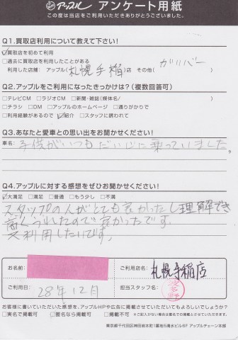 スタッフの人がとてもよかったし理解でき高く売れたので良かったです。また利用したいです。