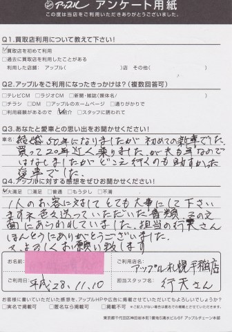 大変大事に乗られていた、お車かと思います。当店をご利用頂き誠にありがとうございました。